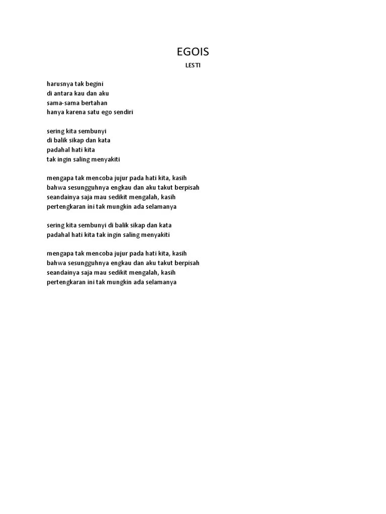 Merelakan hati yang pernah dilukai. Tak mahu ku kenang tak mahu ku berserah Am am jalan cinta yang masih b tak pasti e am inikah angkara cintamu b yang pernah em ku hancurkan c am kerana egoisnya aku. Lagu 'egois mashup aku pergi' milik penyanyi dangdut lesti dan fildan saat ini terus bertengger berada di posisi #1 trending youtube. Lagu tema drama bersiri kt tv…tajuk drama tu egois…lakonan lydiawati dan .